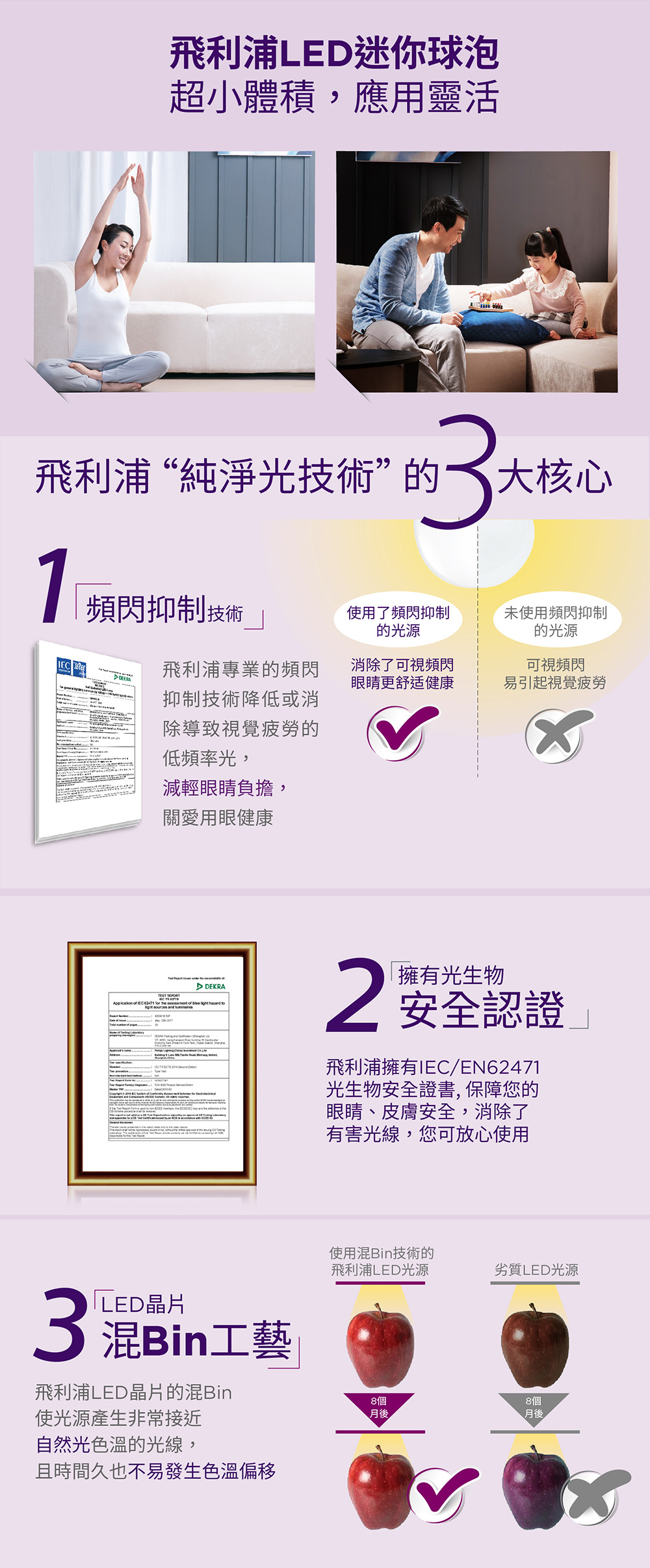 - 專業的頻閃抑制技術與安全認證