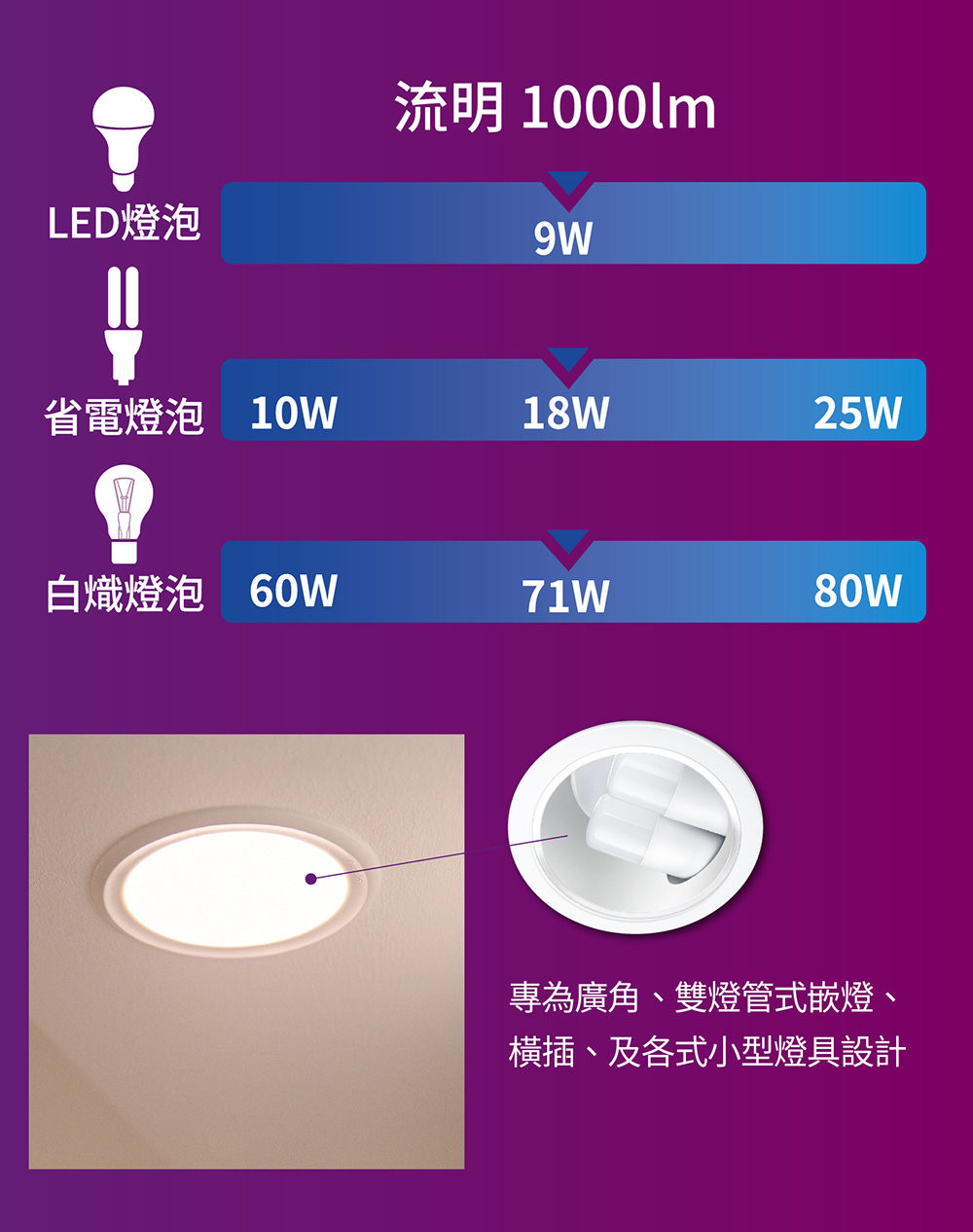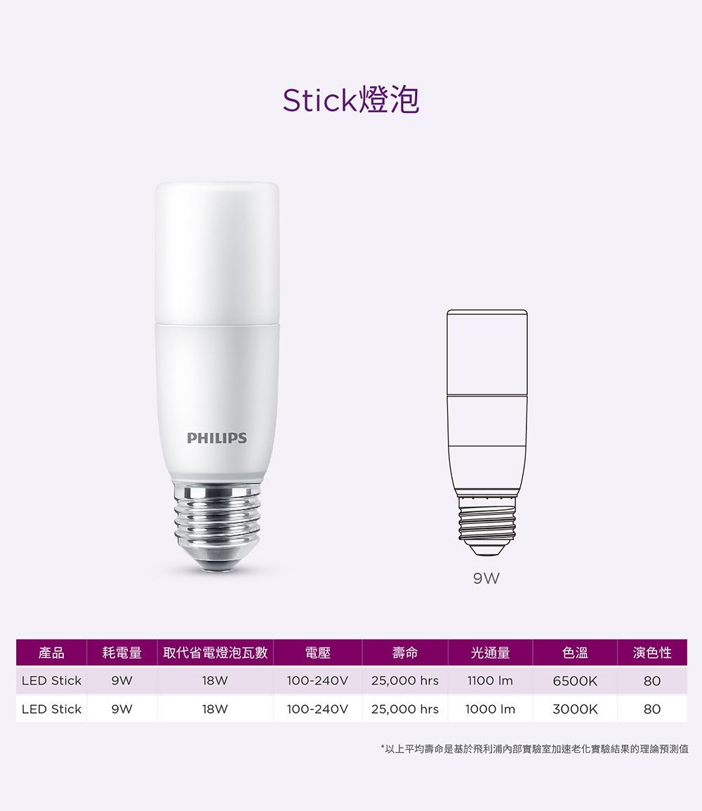 - 功率:9W、可取代18W省電燈泡