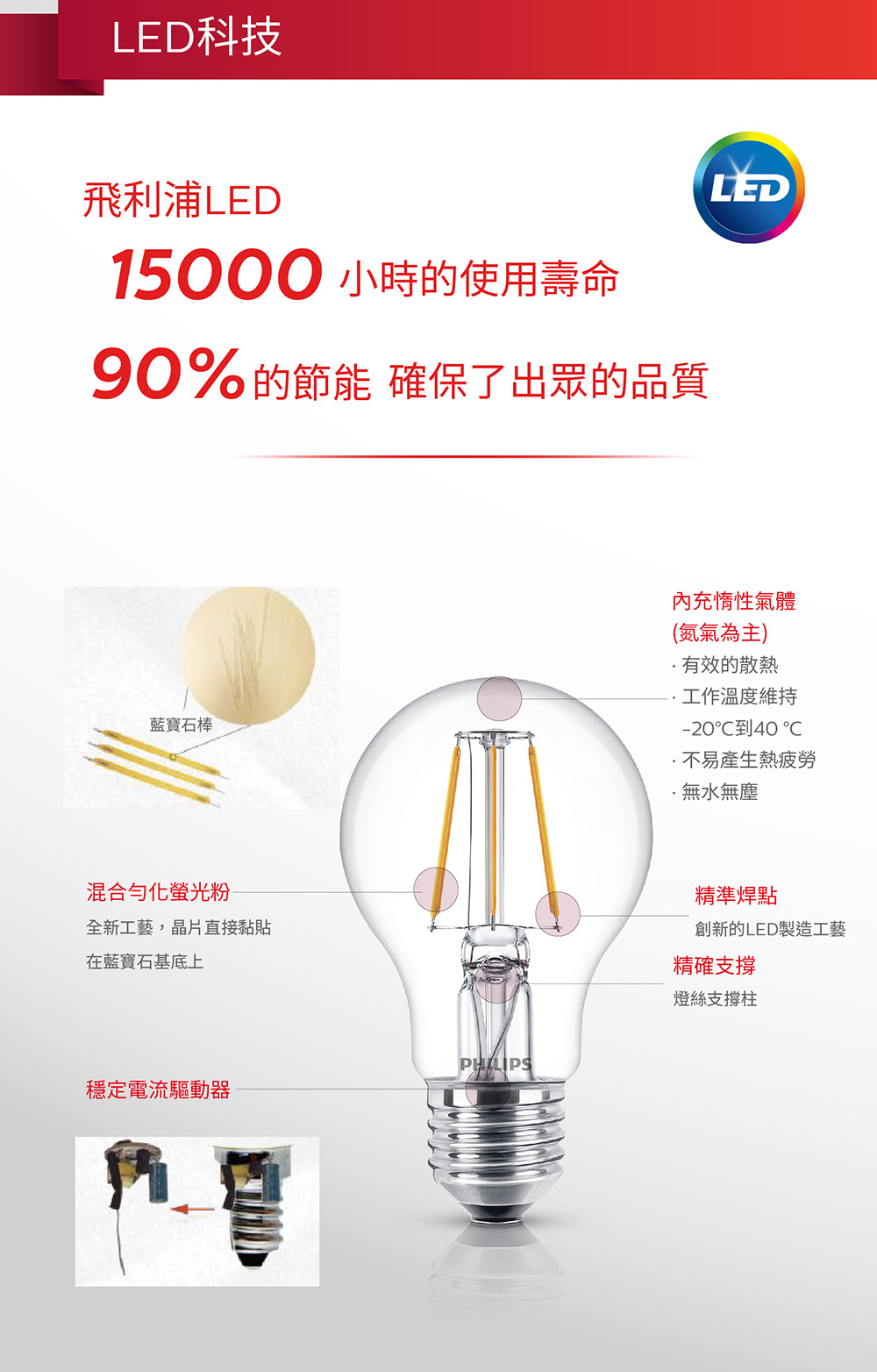 - 平均壽命長達15,000小時