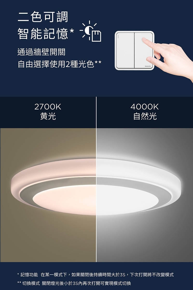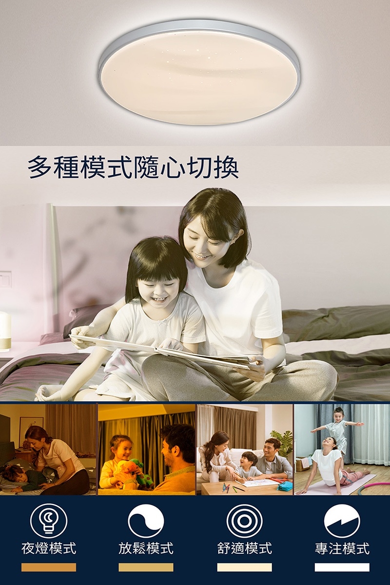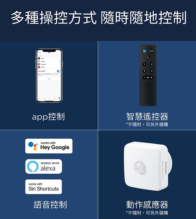 - 多種操控方式,隨時隨地輕鬆控制,暖光至白光選擇