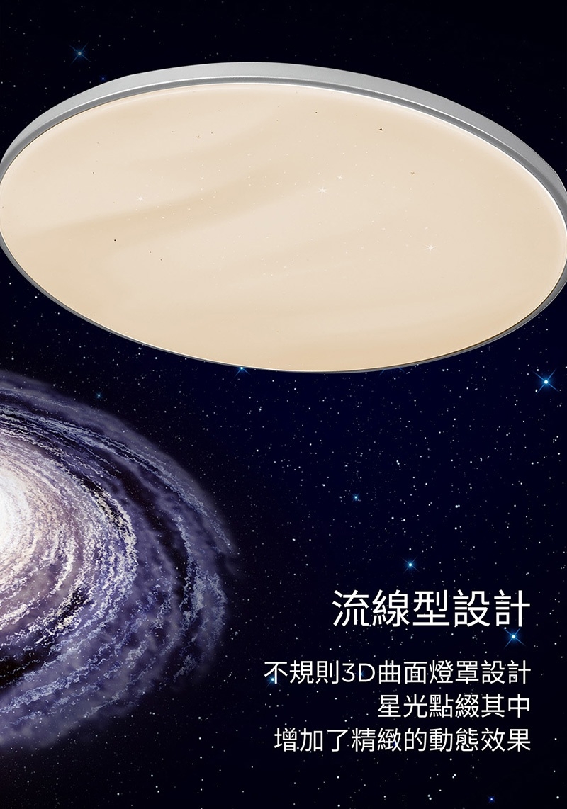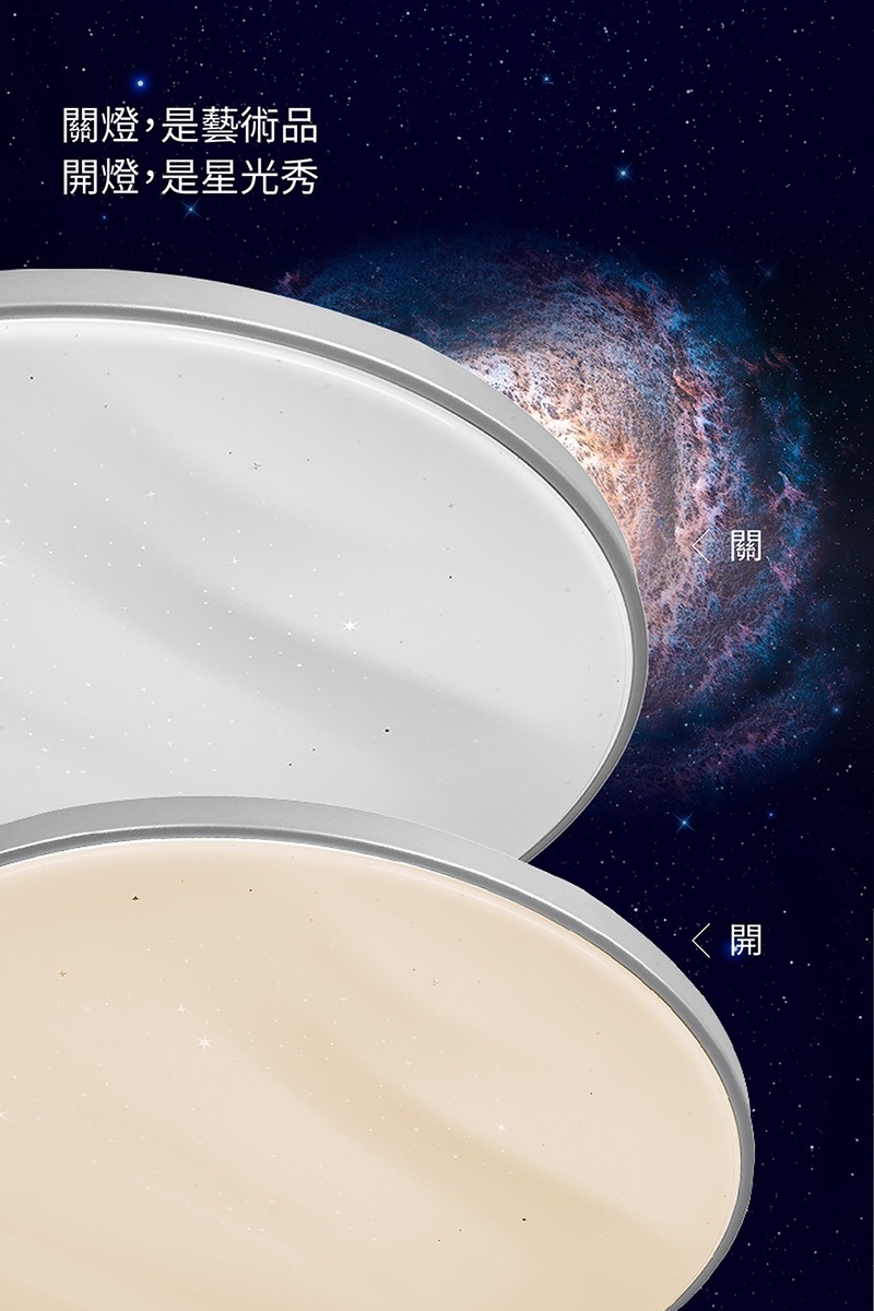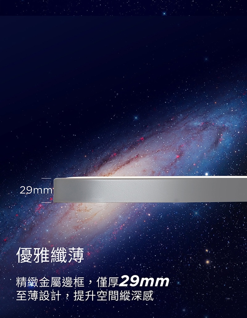 - 優雅纖薄,僅厚29mm,關燈是藝術品,開燈是星光秀
