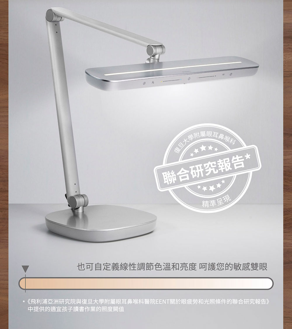 Philips 飛利浦 晶亮 71570 LED護眼檯燈-銀灰色 (PD022)