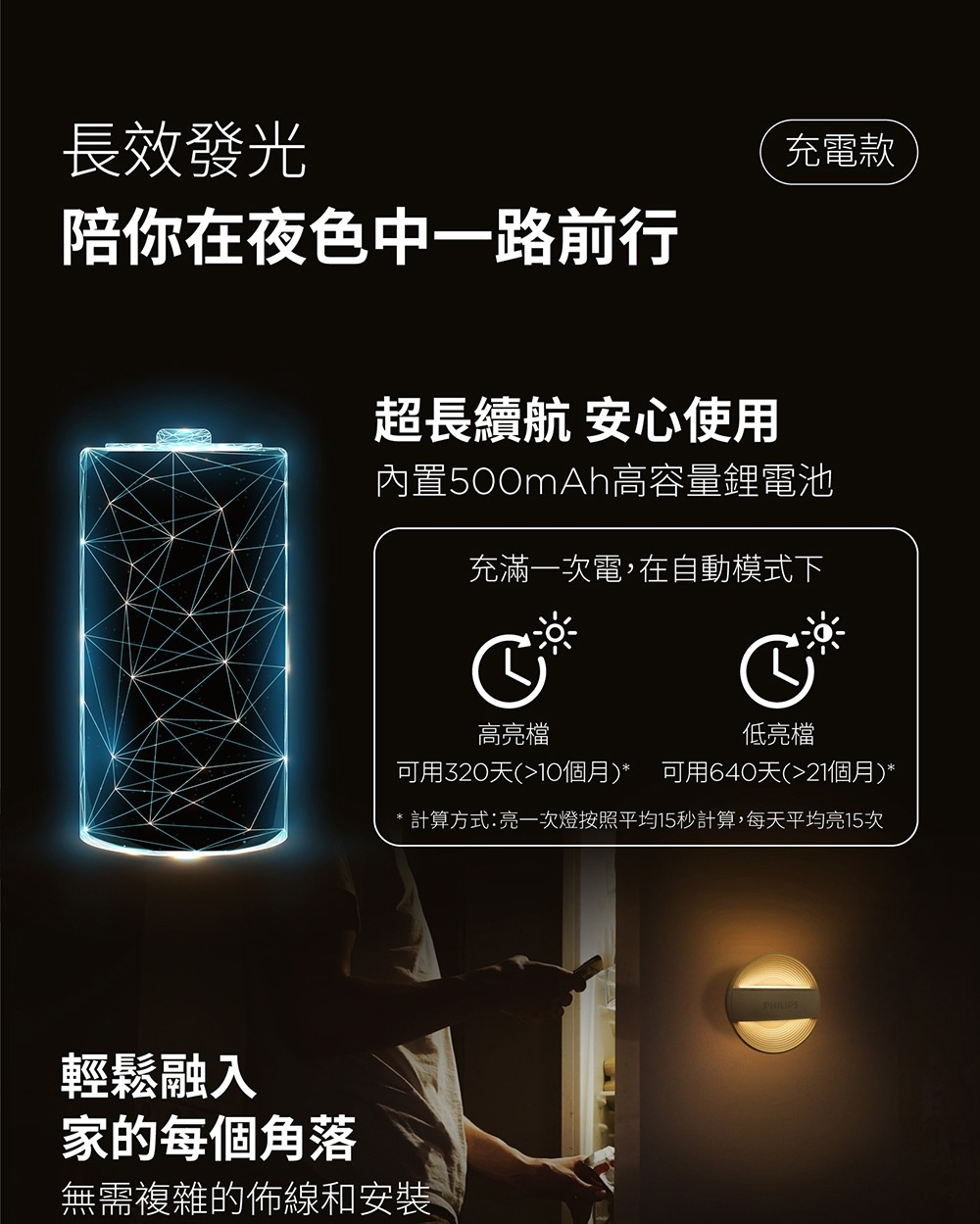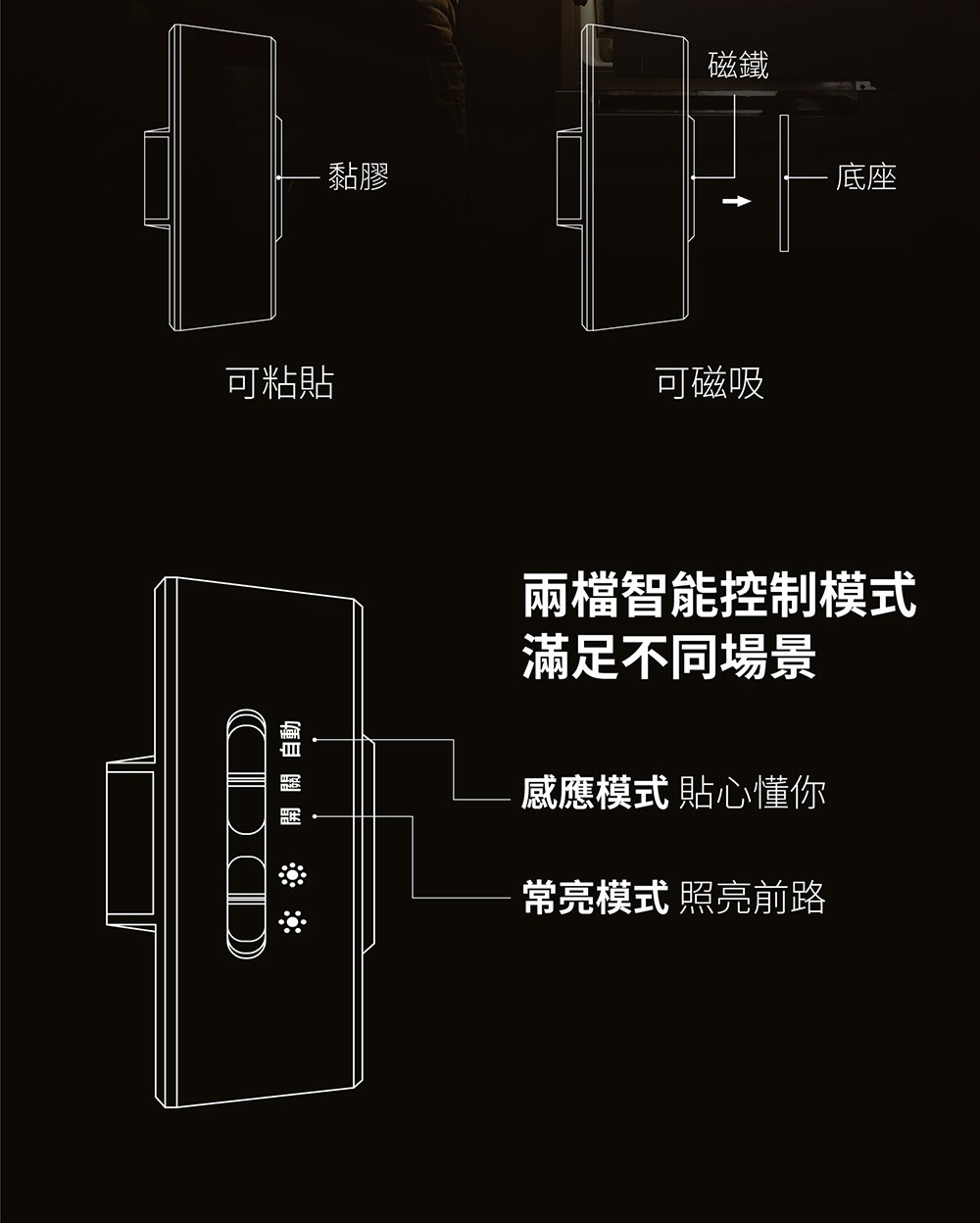 - 感應式夜燈,充電與插座兩用,安裝簡單