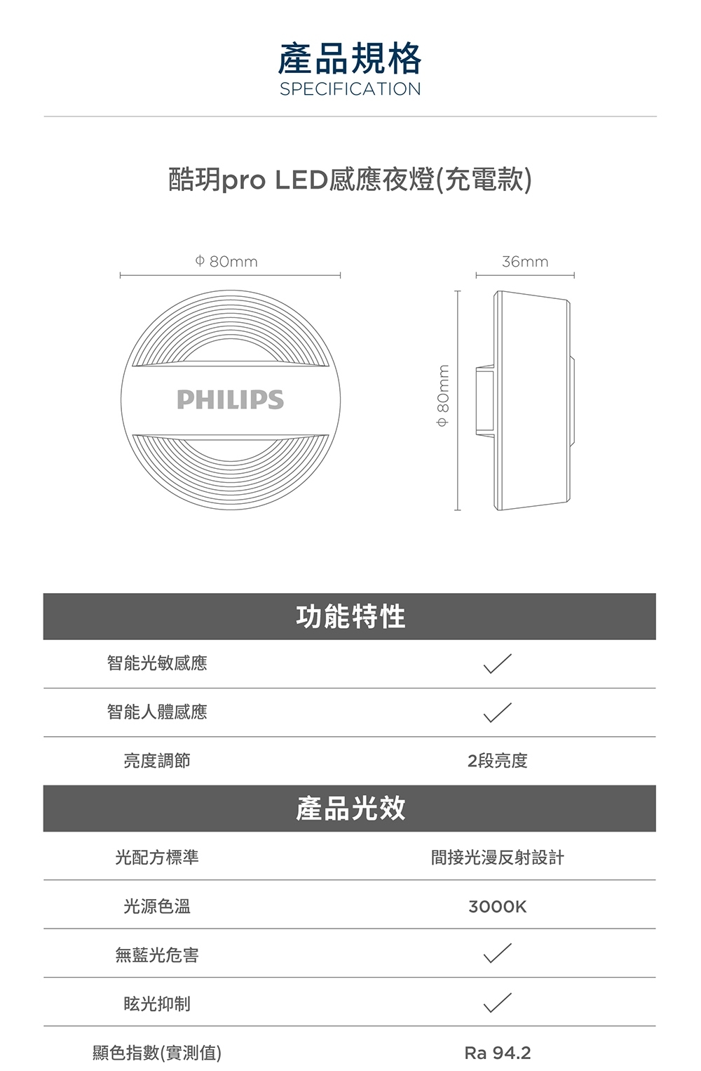 Philips 飛利浦 酷玥 66153 Pro LED感應夜燈 PO012