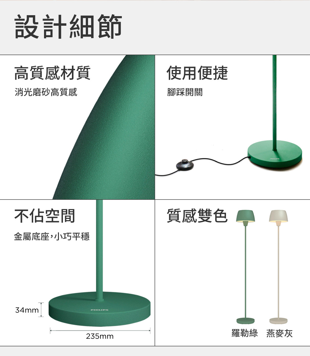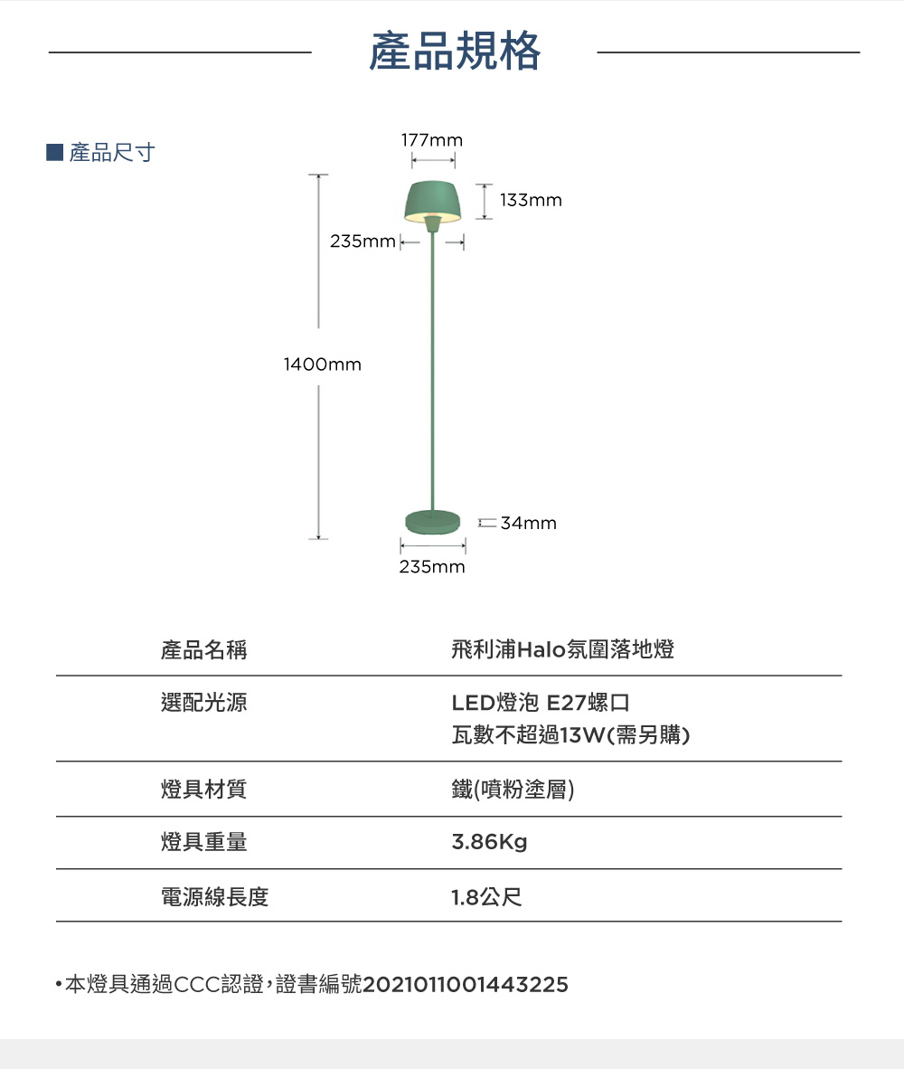 Philips 飛利浦 44102 Halo氛圍落地燈-羅勒綠 + Wiz燈泡 組合 PW013-SP