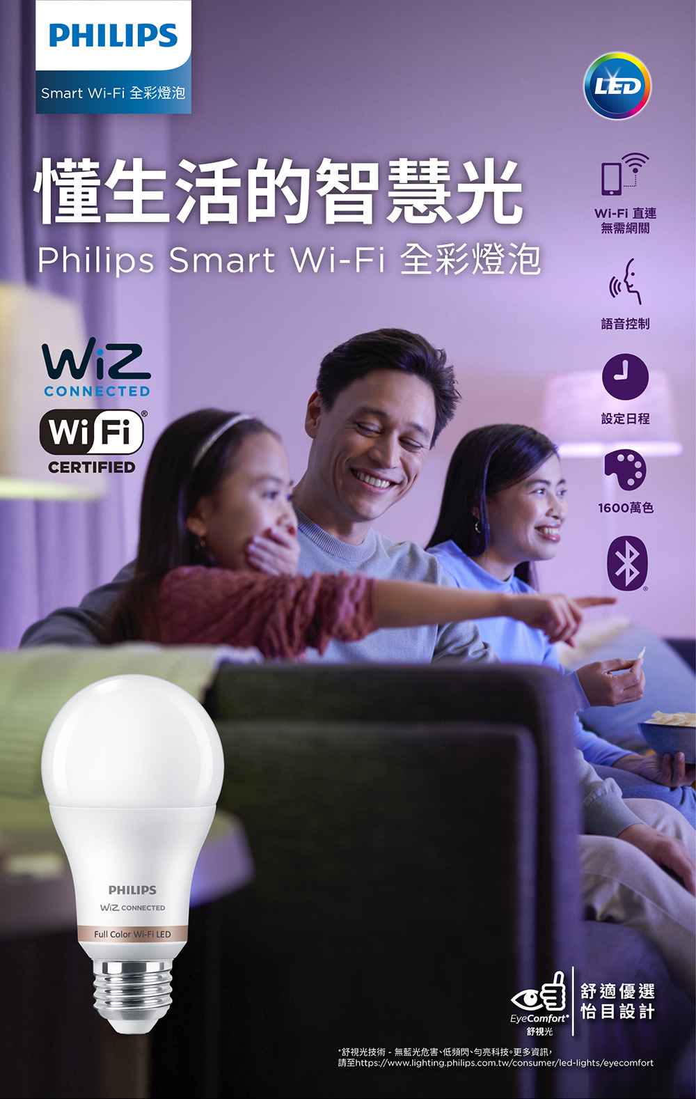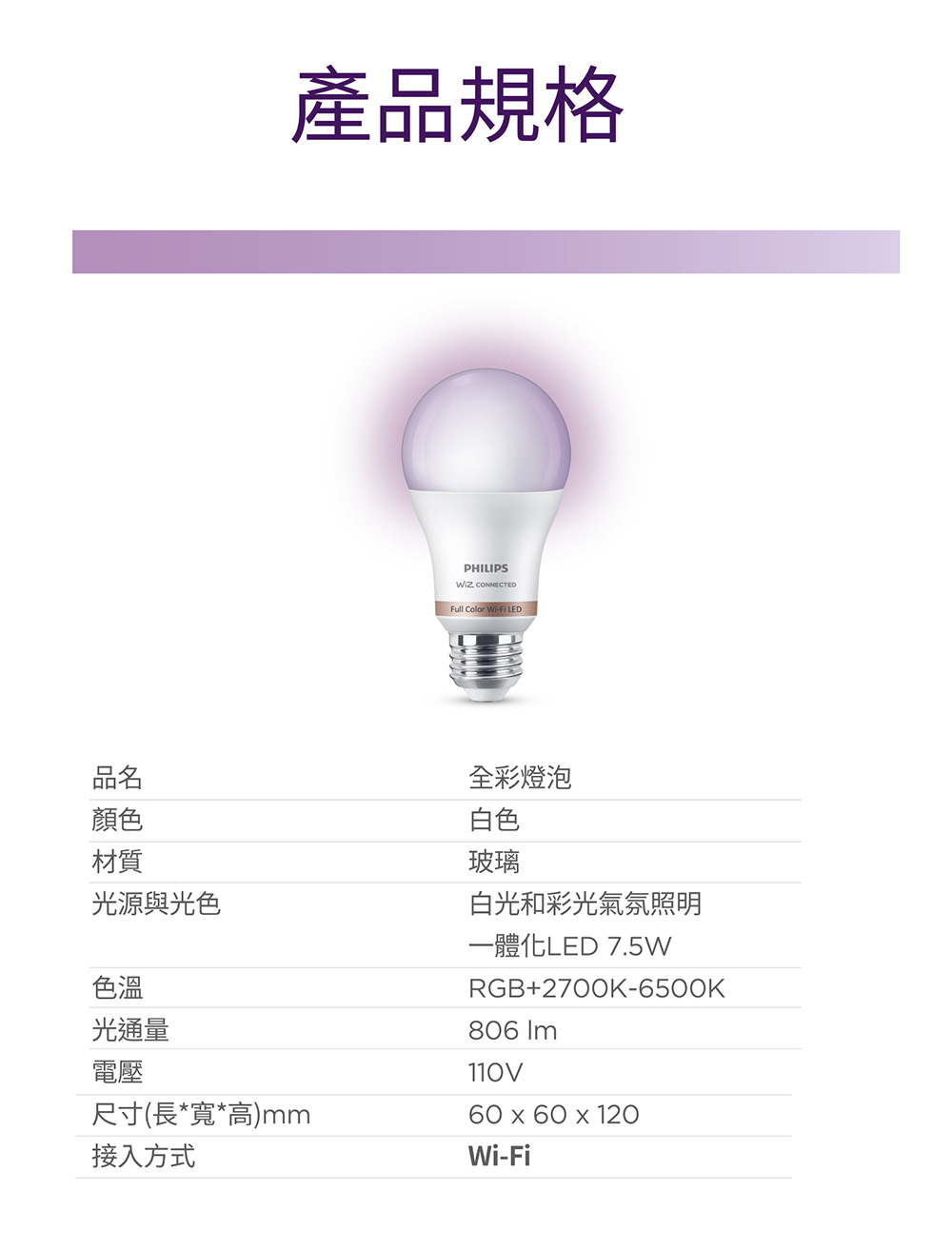 Philips 飛利浦 Wi-Fi WiZ 智慧照明 7.5W全彩燈泡3入(PW04N-3)