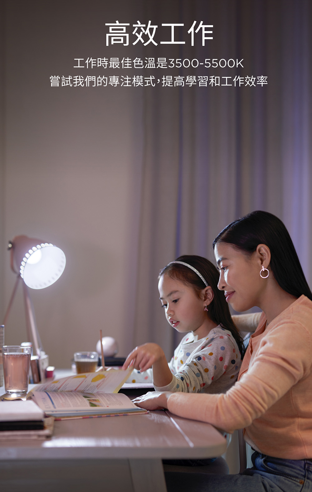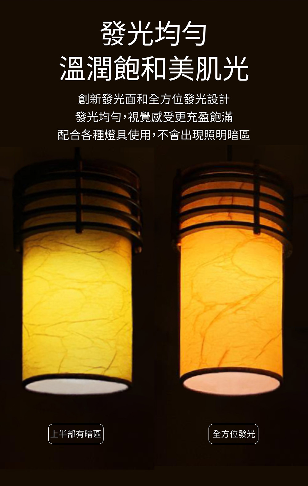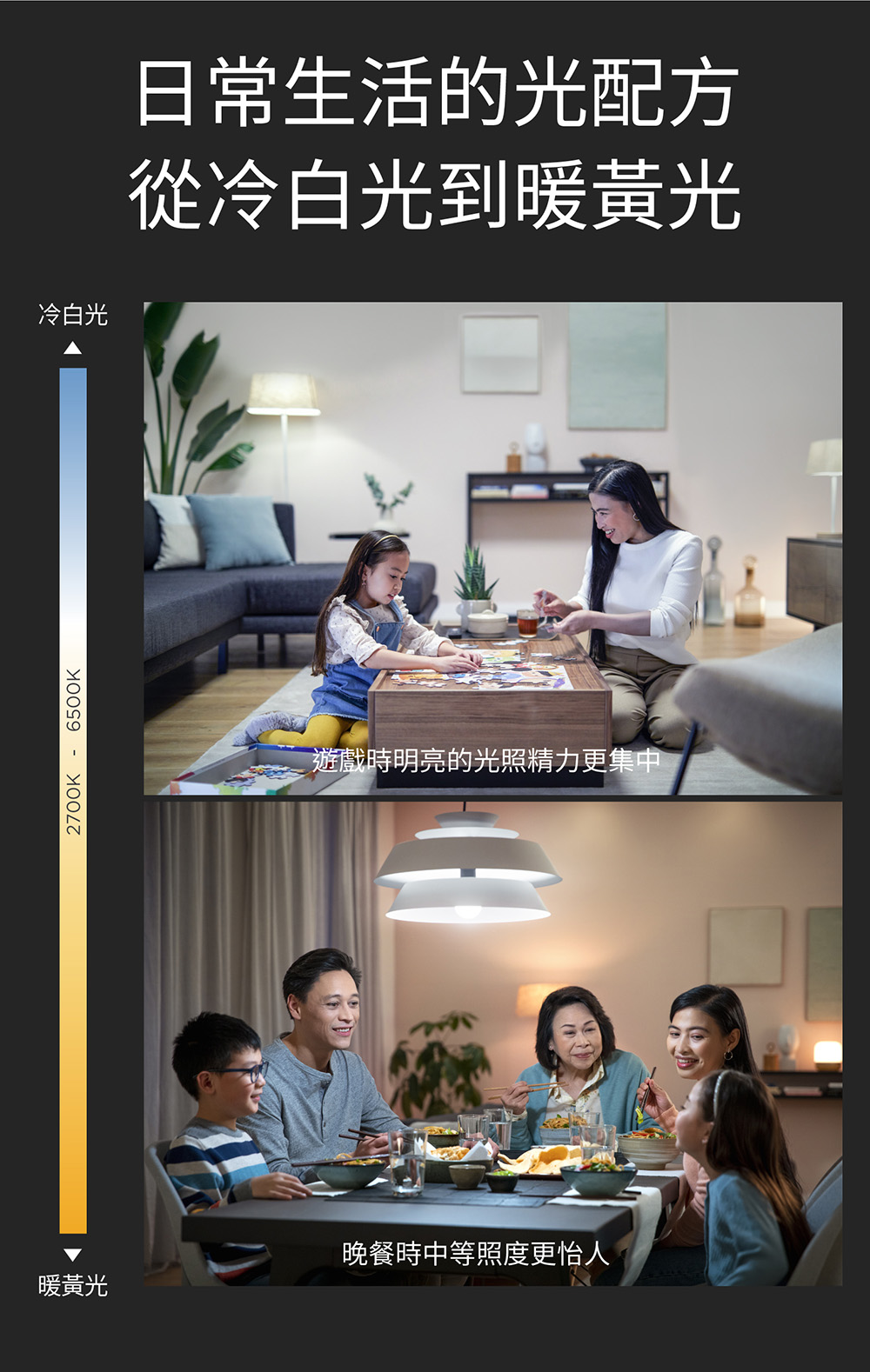 - 無段調節 2700-6500K(暖黃光到冷白光)