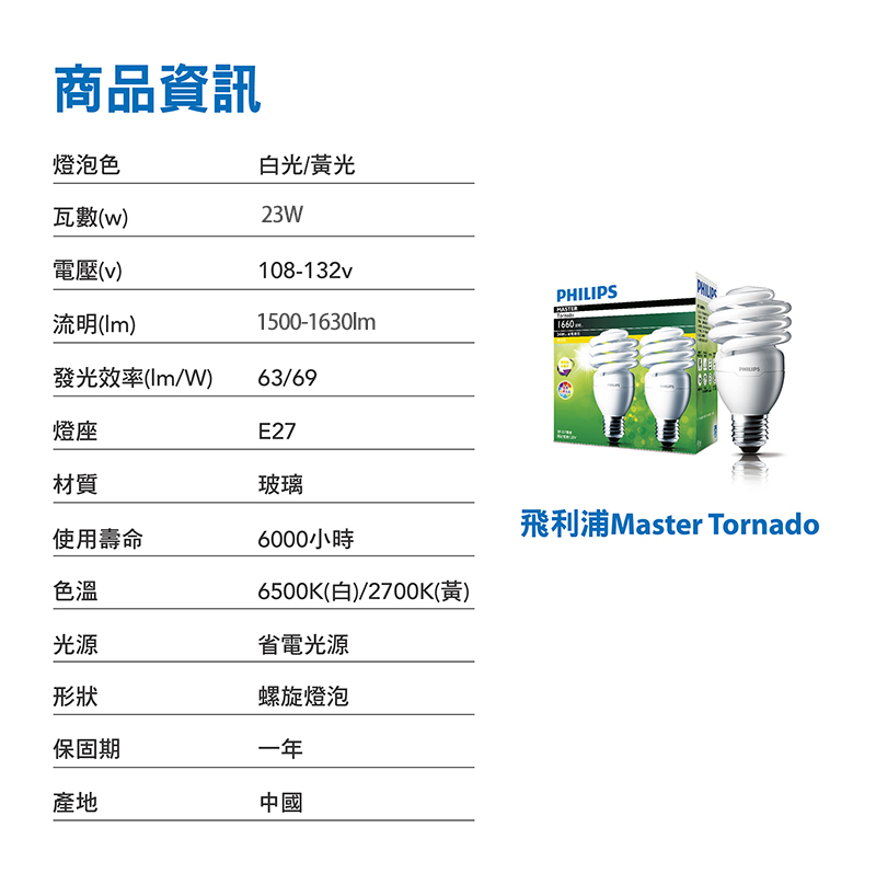 Philips 飛利浦 23W 螺旋省電燈泡-白光6500K 2入裝 (PR901)-拆封福利品