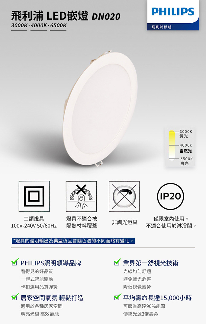 Philips 飛利浦 16W 15CM LED嵌燈-白光6500K (PK009)